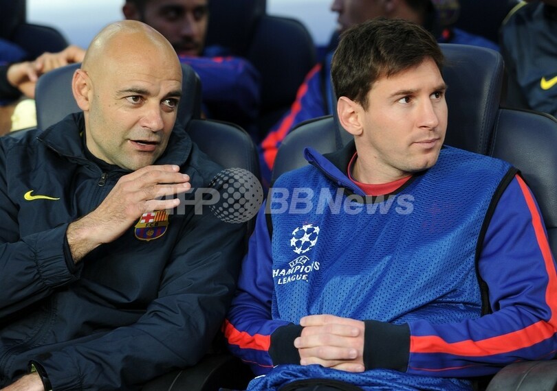 ベンチで試合開始を待つFCバルセロナのリオネル・メッシ(Lionel Messi、2013年5月1日撮影)。(c)AFP/LLUIS GENE