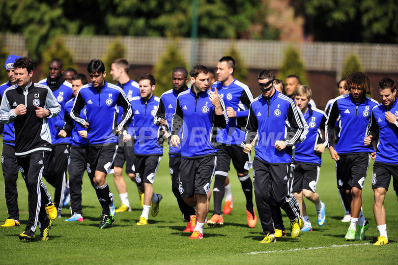 調整に臨むチェルシーの選手(2013年5月1日撮影)。(c)AFP/GLYN KIRK