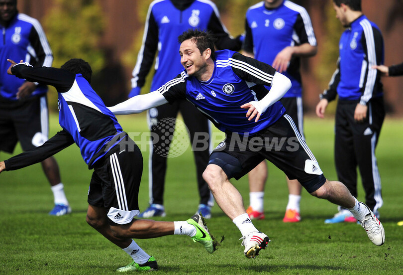 調整に臨むチェルシーのフランク・ランパード(Frank Lampard、右、2013年5月1日撮影)。(c)AFP/GLYN KIRK