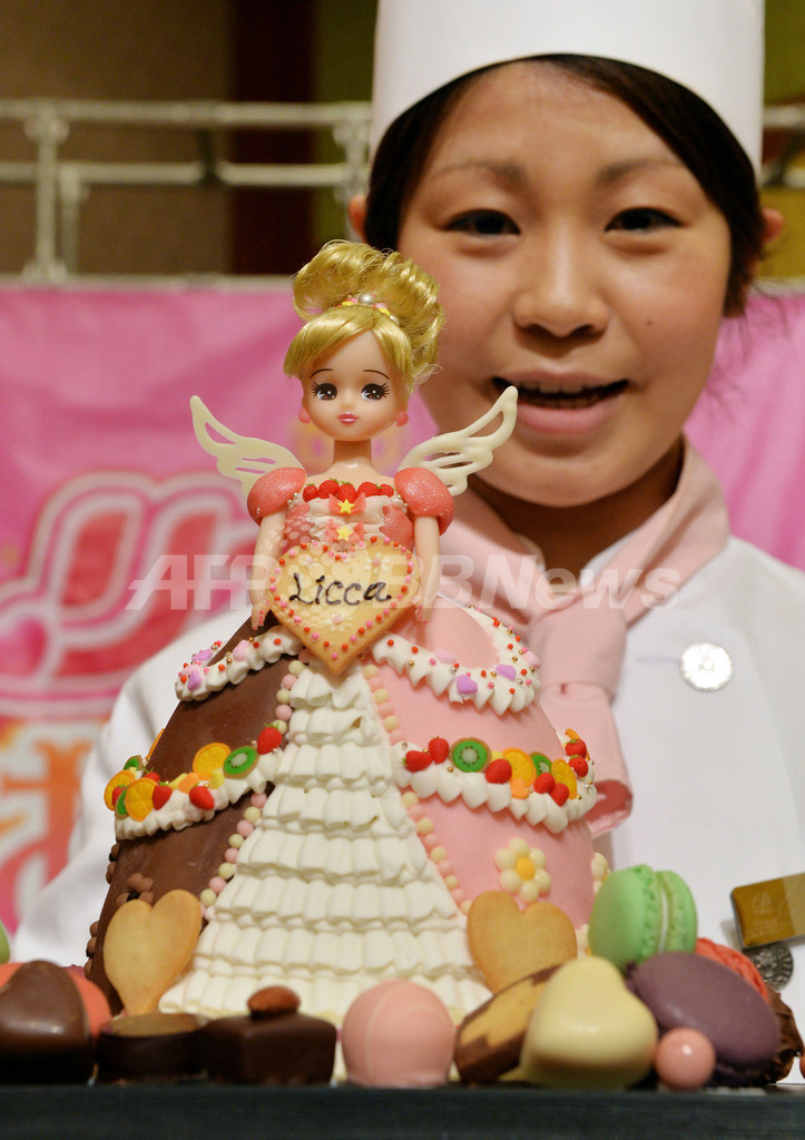 【5月3日 AFP】都内の品川プリンスホテル(Prince Hotel Shinagawa)で2日、玩具大手タカラトミー(Tomy)の人気着せ替え人形「リカちゃん」がケーキでできたドレスをまとった「スウィーティードレス リカちゃん」が公開された。
