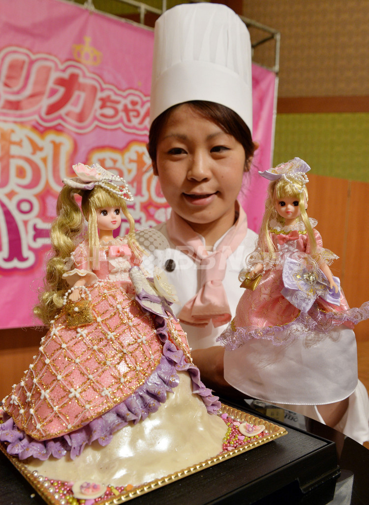 【5月3日 AFP】都内の品川プリンスホテル(Prince Hotel Shinagawa)で2日、玩具大手タカラトミー(Tomy)の人気着せ替え人形「リカちゃん」がケーキでできたドレスをまとった「スウィーティードレス リカちゃん」が公開された。