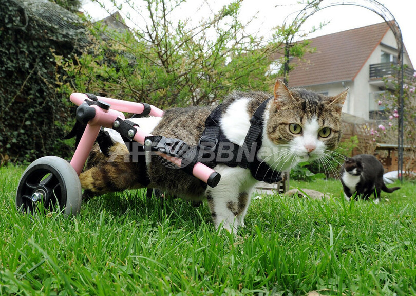 歩行器を使って歩く猫、ドイツ・ツェレ