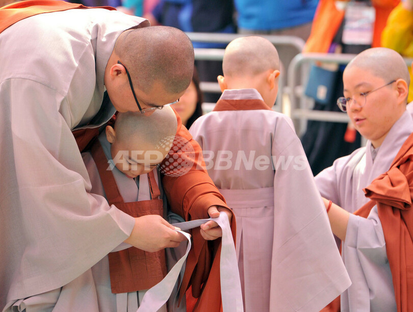 ニュース ライフ 小さなお坊さんがずらり、ソウルで釈迦誕生の記念行事 2013年5月4日 15:46 発信地:ソウル/韓国 [ 韓国・北朝鮮 韓国 ] このニュースをシェア ‹ › ❮ 5/11 ❯ 韓国・ソウル(Seoul)の曹渓寺(Chogye Temple)で3日、釈迦(しゃか)の誕生日を前に、子どもたちが頭を丸める行事が開かれた。韓国での今年の釈迦誕生日は、満月の17日に祝われる(2013年5月3日撮影)。(c)AFP/KIM JAE-HWAN 画像作成中 ! 【5月4日 AFP】韓国・ソウル(Seoul)の曹渓寺(Chogye Temple)で3日、釈迦(しゃか)の誕生日を前に、子どもたちが頭を丸める行事が開かれた。韓国での今年の釈迦誕生日は、満月の17日に祝われる。(c)AFP ライフ 一覧へ> メディア・報道関係・法人の方向け 写真・動画 購入のお問合せ>