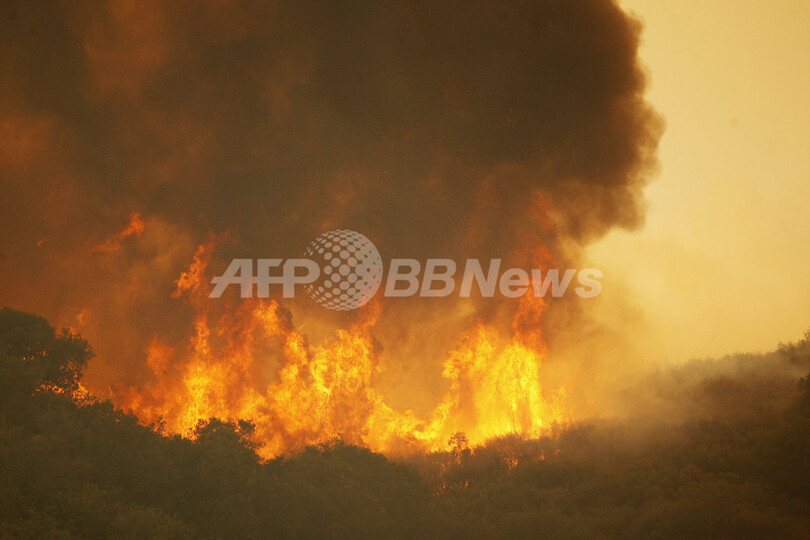 報道によると、この山火事でパシフィック・コースト・ハイウェイ(Pacific Coast Highway)の一部(約13キロ部分)と大学のキャンパス、沿岸部にある海軍の施設が閉鎖されている。(c)AFP