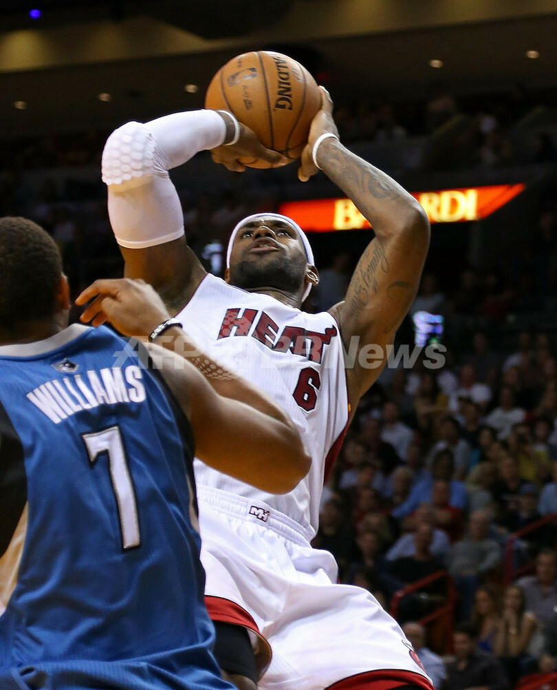 ジャンプシュートを狙うレブロン・ジェームズ(2012年12月18日撮影)。(c)AFP/Getty Images/Mike Ehrmann