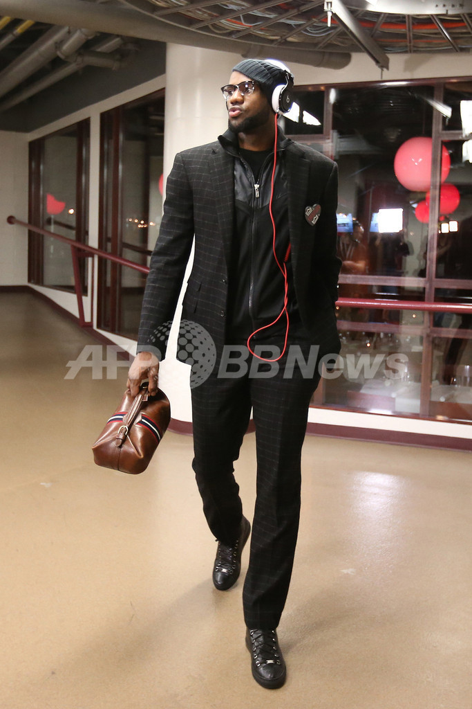 試合会場に到着したレブロン・ジェームズ(2013年3月27日撮影)。(c)AFP/Getty Images/NBAE/Nathaniel S. Butler