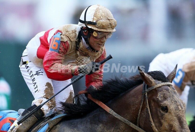 ロザリオ騎手とオーブは、パレスマリス(Palace Malice)が速いペースで逃げる中で後方の位置を保ち、力をため込むと、最終コーナーを回った後の直線では温存していた脚を存分に生かし、圧巻の走りを披露した。(c)AFP