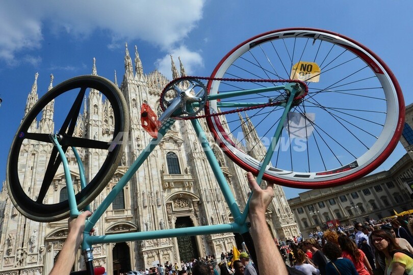 ニュース ライフ 「新たな交通手段を」、自転車の利用を呼び掛け 伊ミラノ 2013年5月5日 12:56 発信地:ミラノ/イタリア [ ヨーロッパ イタリア ] このニュースをシェア ‹ › ❮ 2/6 ❯ イタリア・ミラノ(Milan)で、自転車の利用促進を訴える集会に参加し、自転車を持ち上げた人(2013年5月4日撮影)。(c)AFP/GIUSEPPE CACACE 画像作成中 ! 【5月5日 AFP】イタリア・ミラノ(Milan)で4日、自転車の利用促進を訴える人たちがドゥオモ(大聖堂)の前に集まり、「新たな交通手段を」と訴えて行進した。(c)AFP ライフ 一覧へ> メディア・報道関係・法人の方向け 写真・動画 購入のお問合せ>