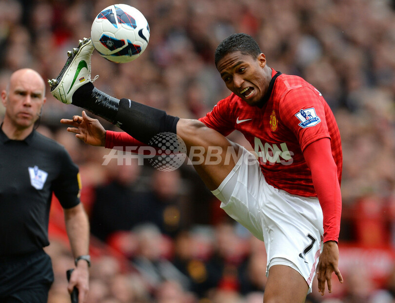 ボールをコントロールするマンチェスター・ユナイテッドのアントニオ・バレンシア(Luis Antonio Valencia、2013年5月5日撮影)。(c)AFP/ANDREW YATES