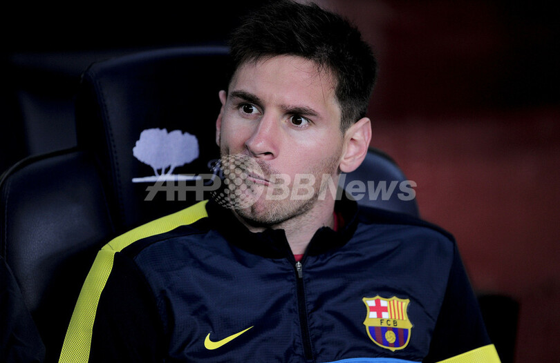 ベンチに座って試合開始を待つFCバルセロナのリオネル・メッシ(Lionel Messi、2013年5月5日撮影)。(c)AFP/JOSEP LAGO