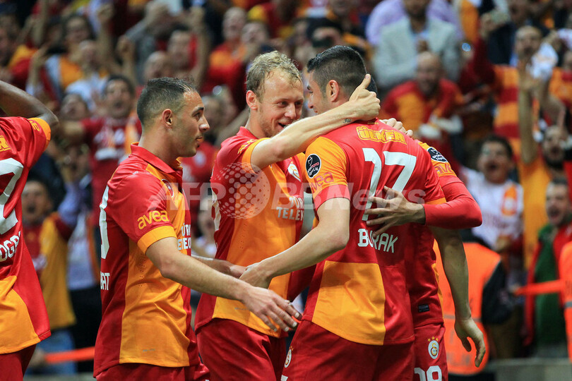 チームの得点を喜ぶガラタサライの選手(2013年5月5日撮影)。(c)AFP/MIRA