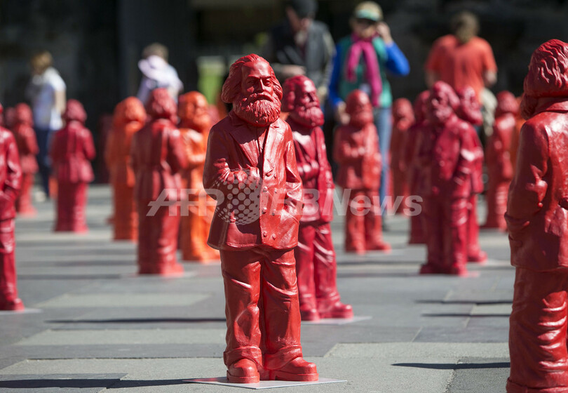 【5月6日 AFP】国連教育科学文化機関(ユネスコ、UNESCO)の世界遺産に登録されているドイツ南西部トリーア(Trier)の「ポルタニグラ」前で5日、カール・マルクス(Karl Marx)の彫刻500体を並べたインスタレーション作品「Karl Marx」が展示された。トリーアはマルクスが生まれた地。