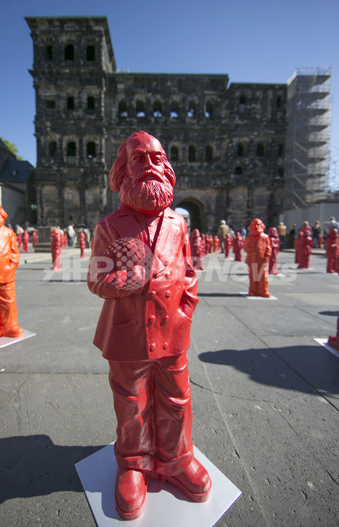【5月6日 AFP】国連教育科学文化機関(ユネスコ、UNESCO)の世界遺産に登録されているドイツ南西部トリーア(Trier)の「ポルタニグラ」前で5日、カール・マルクス(Karl Marx)の彫刻500体を並べたインスタレーション作品「Karl Marx」が展示された。トリーアはマルクスが生まれた地。