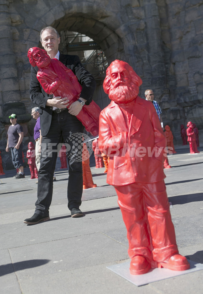 【5月6日 AFP】国連教育科学文化機関(ユネスコ、UNESCO)の世界遺産に登録されているドイツ南西部トリーア(Trier)の「ポルタニグラ」前で5日、カール・マルクス(Karl Marx)の彫刻500体を並べたインスタレーション作品「Karl Marx」が展示された。トリーアはマルクスが生まれた地。