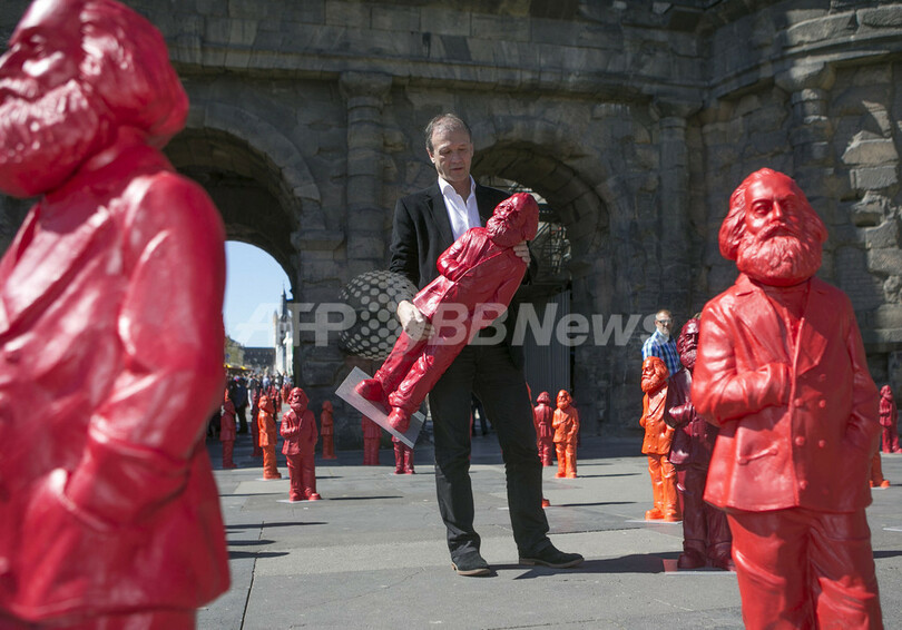 【5月6日 AFP】国連教育科学文化機関(ユネスコ、UNESCO)の世界遺産に登録されているドイツ南西部トリーア(Trier)の「ポルタニグラ」前で5日、カール・マルクス(Karl Marx)の彫刻500体を並べたインスタレーション作品「Karl Marx」が展示された。トリーアはマルクスが生まれた地。