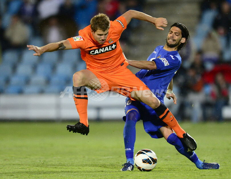 スポーツ サッカー レアル・ソシエダがヘタフェに敗れる 2013年5月7日 9:01 発信地:マドリード/スペイン [ ヨーロッパ スペイン ] このニュースをシェア ‹ › ❮ 4/8 ❯ 12-13スペイン1部リーグは6日、第34節の試合が行われ、レアル・ソシエダ(Real Sociedad)は1-2でヘタフェ(Getafe CF)に敗れた。ヘタフェのアンヘル・ラフィタ(Angel Imanol Lafita、右)とボールを競るレアル・ソシエダのイニゴ・マルティネス(Inigo Martinez、2013年5月6日撮影)。(c)AFP/JAVIER SORIANO 画像作成中 ! 【5月7日 AFP】12-13スペイン1部リーグは6日、第34節の試合が行われ、レアル・ソシエダ(Real Sociedad)は1-2でヘタフェ(Getafe CF)に敗れた。(c)AFP サッカー 一覧へ> メディア・報道関係・法人の方向け 写真・動画 購入のお問合せ>
