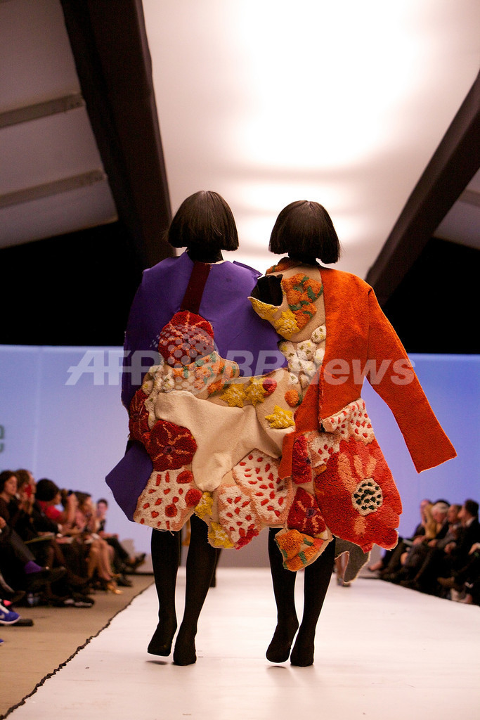 今回、ファッション界への貢献を称えて「ロダルテ(Rodarte)」を手がけるケイト・ミュラヴィー(Kate Mulleavy)とローラ・ミュラヴィー(Laura Mulleavy)姉妹に「レジェンド・ファッション賞」が授与された。また、同校の学生によるファッションショーも行なわれた。(c)AFP/Getty Images