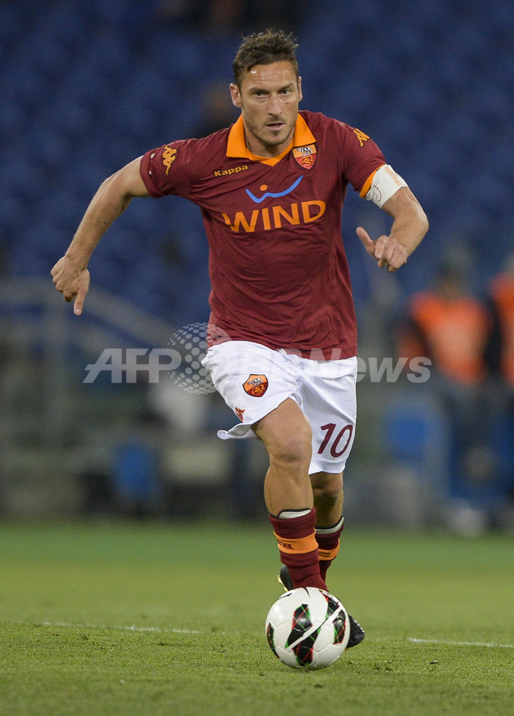 ボールをコントロールするASローマのフランチェスコ・トッティ(Francesco Totti、2013年5月7日撮影)。(c)AFP/ANDREAS SOLARO