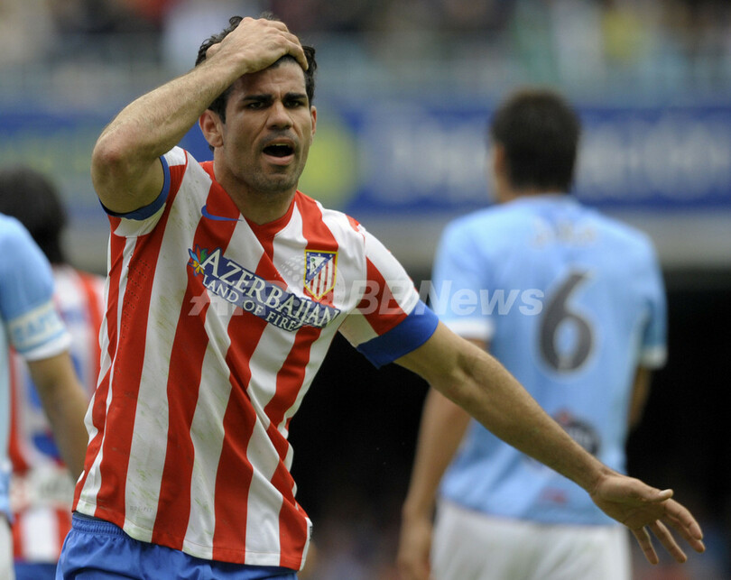 得点機を逃し落胆するアトレティコ・マドリードのジエゴ・コスタ(Diego da Silva Costa、2013年5月8日撮影)。(c)AFP/MIGUEL RIOPA