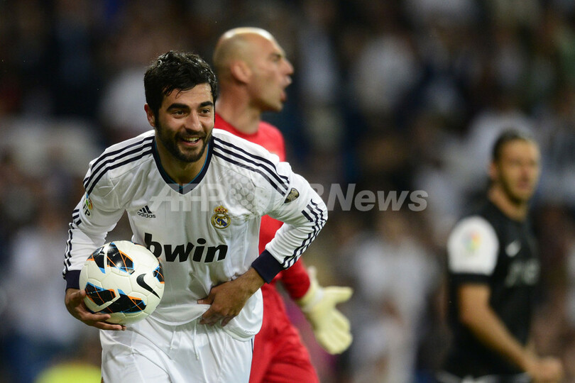 その後、カウンター攻撃からメスト・エジル(Mesut Ozil)が追加点を挙げたレアルは、直後にマラガのアントゥネス(Vitorino Antunes)に1点を返されたものの、前半終了間際にカリム・ベンゼマ(Karim Benzema)、後半にはモドリッチとアンヘル・ファビアン・ディ・マリア(Angel Fabian Di Maria)の得点で突き放した。(c)AFP