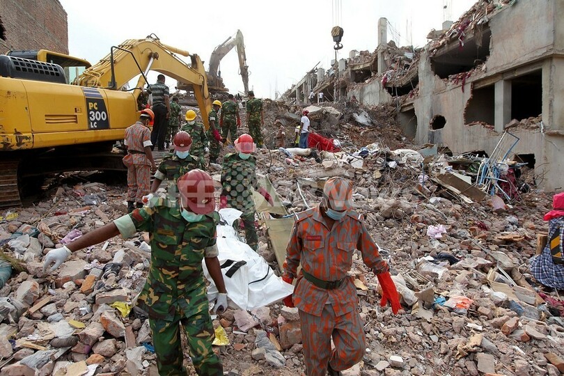 ニュース 社会 バングラデシュのビル崩壊、死者900人超える 2013年5月9日 14:03 発信地:ダッカ/バングラデシュ [ アジア・オセアニア バングラデシュ ] このニュースをシェア ‹ › ❮ 2/3 ❯ バングラデシュ首都ダッカ(Dhaka)近郊のサバール(Savar)で起きたビル崩壊事故の現場で、犠牲者の遺体を運び出す兵士と消防隊(2013年5月5日撮影)。(c)AFP/Munir uz ZAMAN 画像作成中 ! 【5月9日 AFP】バングラデシュの首都ダッカ(Dhaka)近郊で起きたビル崩壊事故で、同国の軍関係者は9日、死者が900人を超えたと述べた。 軍関係者によると、前夜から朝にかけて100人以上の遺体が回収され、死者数は912人となった。(c)AFP 社会 一覧へ> メディア・報道関係・法人の方向け 写真・動画 購入のお問合せ>