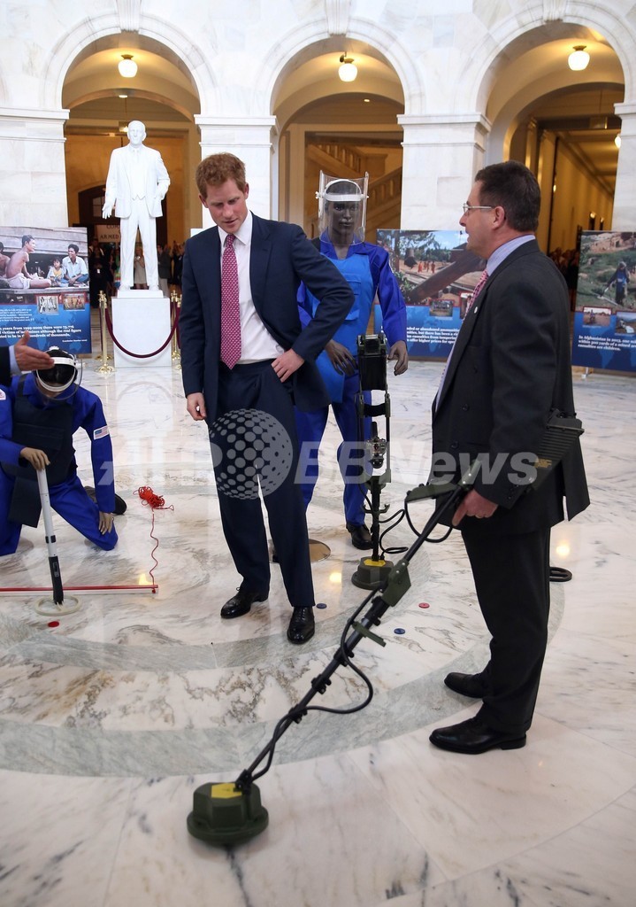 【5月10日 AFP】英国のヘンリー王子(Prince Harry)が9日、米国を公式訪問し、首都ワシントンD.C.(Washington, DC)の連邦職員やインターンの女性たちの心をとりこにした。しかし王子は、自分の姿を一目見ようと殺到した女性たちには目もくれず、地雷除去の方法に興味津々。女性たちは肩を落とす結果となった。