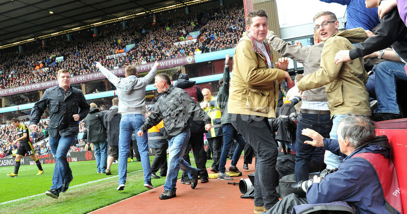 後半43分、チェルシーのフランク・ランパード(Frank Lampard)が決勝ゴールを決めた直後、興奮してピッチに乱入する一部のチェルシーサポーター(2013年5月11日撮影)。(c)AFP/PAUL ELLIS