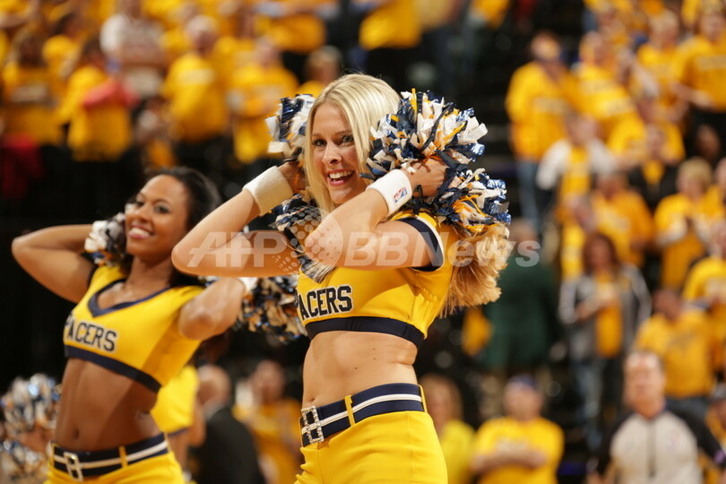 パフォーマンスを披露するインディアナ・ペイサーズのチアリーダー(2013年5月11日撮影)。(c)AFP/Getty Images/NBAE/Ron Hoskins