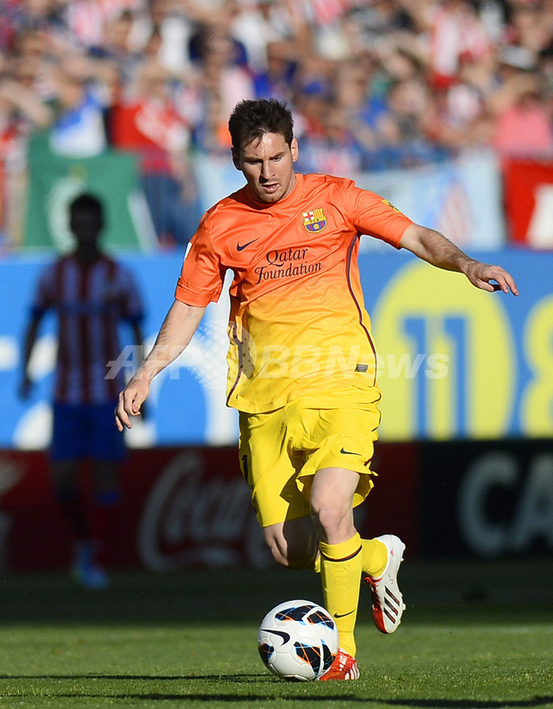 ドリブルでボールを運ぶFCバルセロナのリオネル・メッシ(Lionel Messi、2013年5月12日撮影)。(c)AFP/PIERRE-PHILIPPE MARCOU
