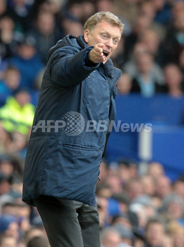 試合中に指示を出すエバートンのデビッド・モイーズ(David Moyes)監督(2013年5月12日撮影)。(c)AFP/LINDSEY PARNABY