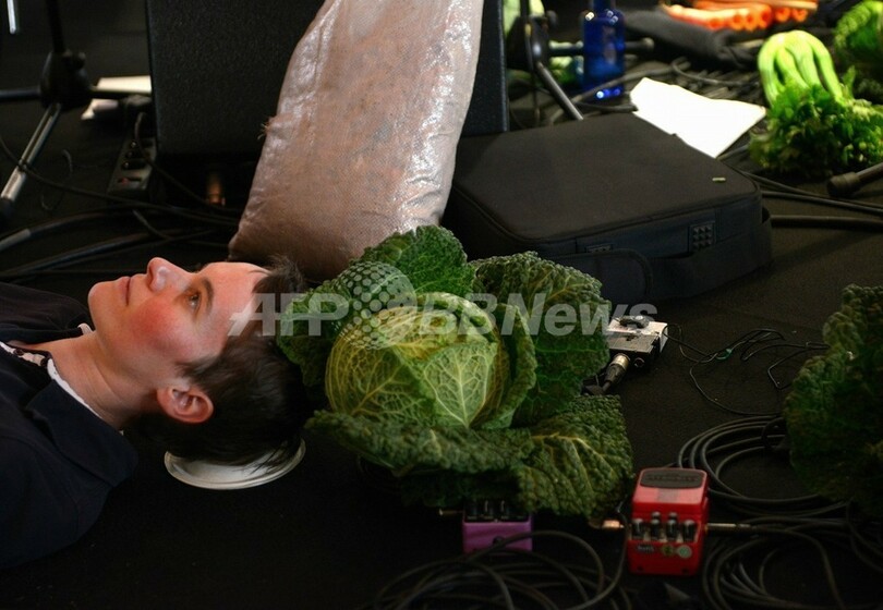 【5月14日 AFP】スペインの首都マドリード(Madrid)で13日、サンミゲル(San Miguel)市場の創設100年を祝い、オーストリアの楽団「ウィーン・ベジタブル・オーケストラ(Vienna Vegetable Orchestra)」が市場の野菜を用いて演奏を披露した。フルートはニンジン、ドラムはカボチャ、ターニップ(大根に似た野菜)がトランペットといった具合だ。演奏が終わった後は、観客に野菜料理がふるまわれた。(c)AFP