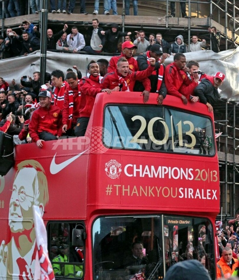 【5月14日 AFP】12-13イングランド・プレミアリーグで優勝を果たしたマンチェスター・ユナイテッド(Manchester United)が13日、マンチェスター(Manchester)市内で優勝パレードを行った。