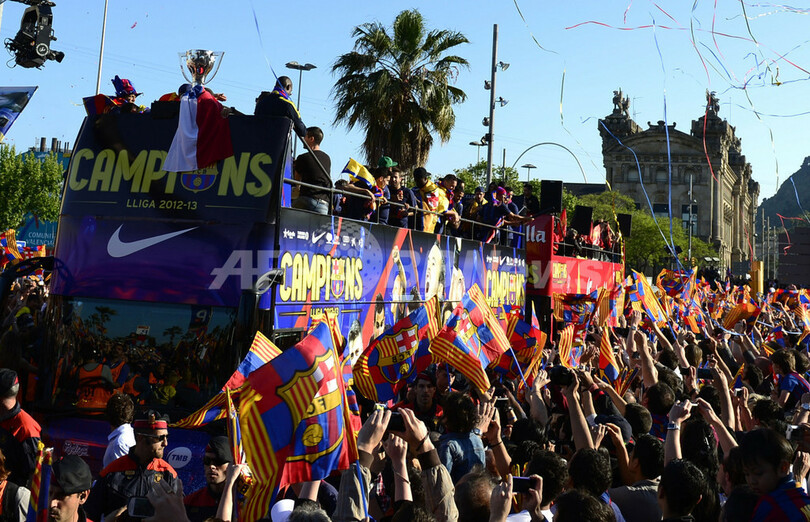 スポーツ サッカー リーグ制覇のFCバルセロナが優勝パレード 2013年5月14日 9:59 発信地:バルセロナ/スペイン [ ヨーロッパ スペイン ] このニュースをシェア ‹ › ❮ 13/15 ❯ 12-13スペイン1部リーグの優勝を果たしたFCバルセロナ(FC Barcelona)が13日、バルセロナ(Barcelona)市内で優勝パレードを行った。バスに乗ってパレードするFCバルセロナの選手(2013年5月13日撮影)。(c)AFP/LLUIS GENE 画像作成中 ! 【5月14日 AFP】12-13スペイン1部リーグの優勝を果たしたFCバルセロナ(FC Barcelona)が13日、バルセロナ(Barcelona)市内で優勝パレードを行った。(c)AFP サッカー 一覧へ> メディア・報道関係・法人の方向け 写真・動画 購入のお問合せ>
