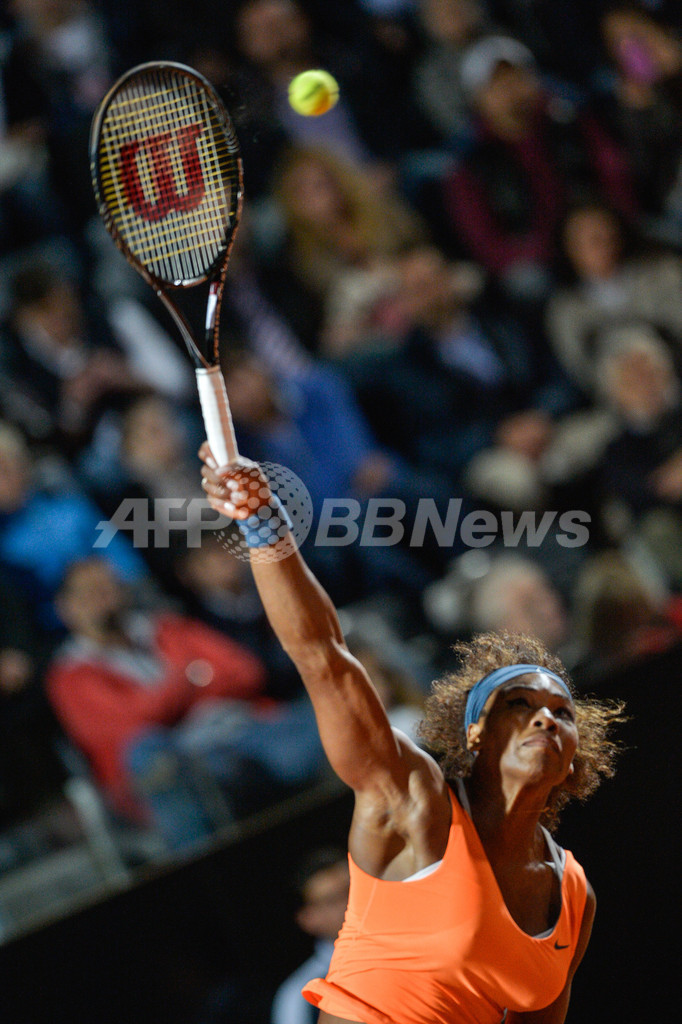 サーブを打つセレーナ・ウィリアムス(2013年5月14日撮影)。(c)AFP/ANDREAS SOLARO
