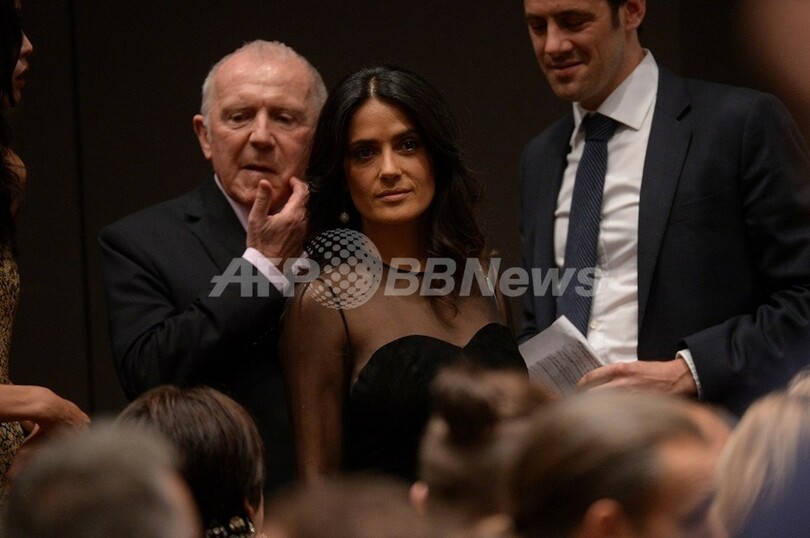 会場にはメキシコ人女優のサルマ・ハエック(Salma Hayek)さんも顔をみせ、オークションに花を添えた。(c)AFP