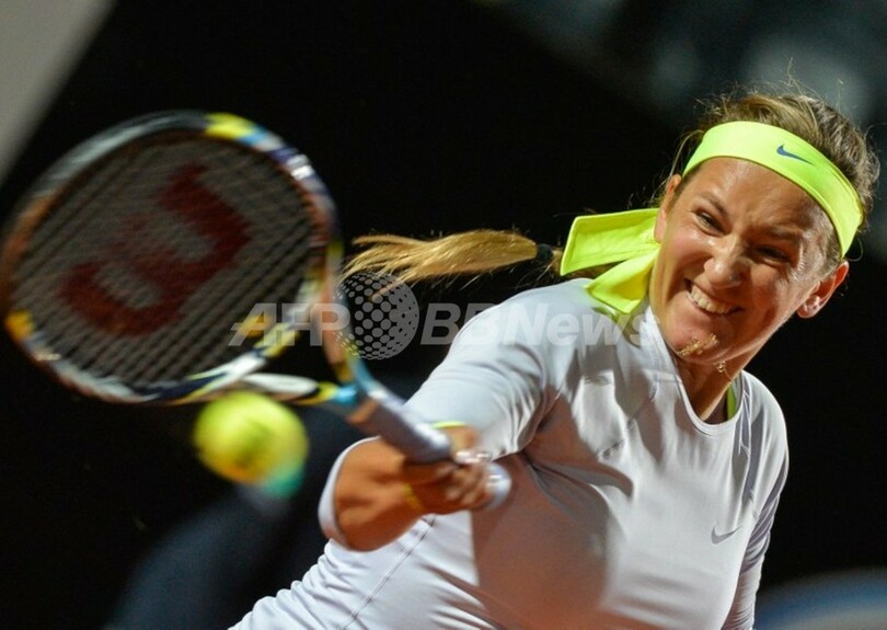 リターンを打つビクトリア・アザレンカ(2013年5月15日撮影)。(c)AFP/ANDREAS SOLARO