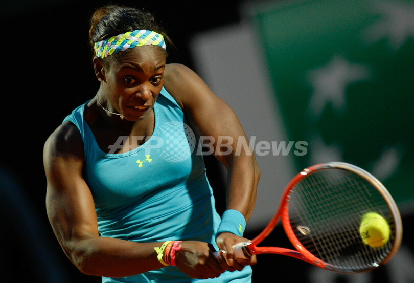 リターンを打つスローン・スティーブンズ(2013年5月16日撮影)。(c)AFP/ANDREAS SOLARO