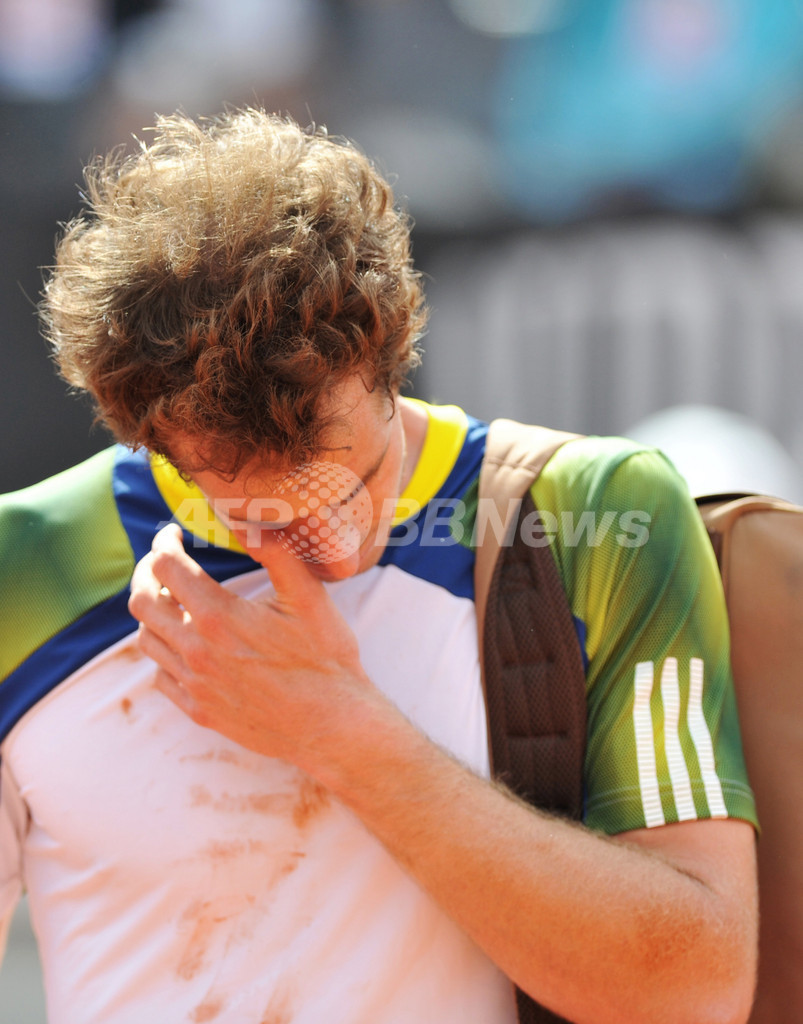 途中棄権を表明したアンディ・マレー(2013年5月15日撮影)。(c)AFP/TIZIANA FABI
