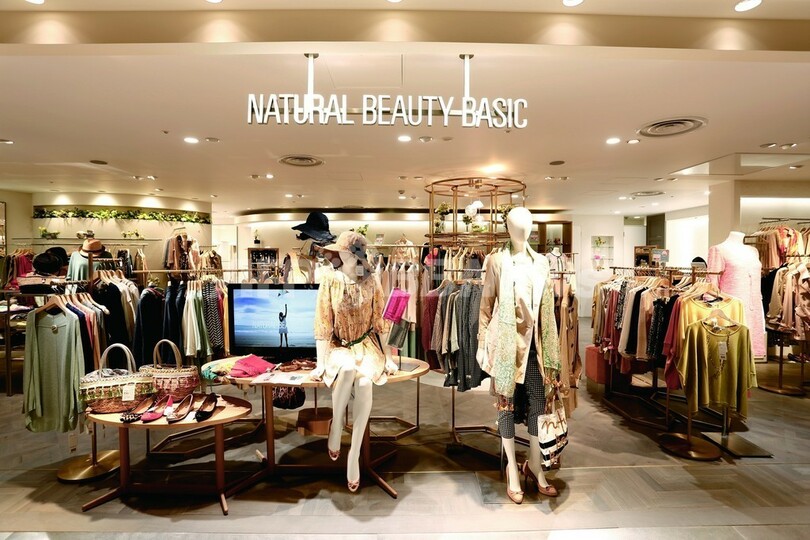 今回のリニューアルで本館からプラザ館へ移転した、「ナチュラル ビューティー ベーシック」。ベーシックさに程良くトレンドを取り入れたアイテムと着回しの利く、コーディネートができ、オン・オフをカバーと心強いブランド。この春夏シーズンは、パステルのさわやかな色づかいのアイテムがお薦めとのこと。