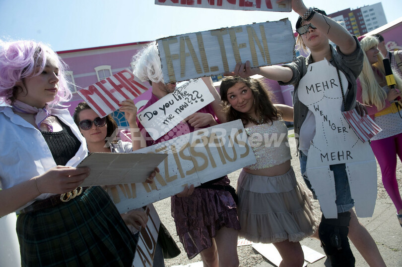 等身大の「バービーの夢の家」ドイツにオープン、FEMENのトップレス抗議も