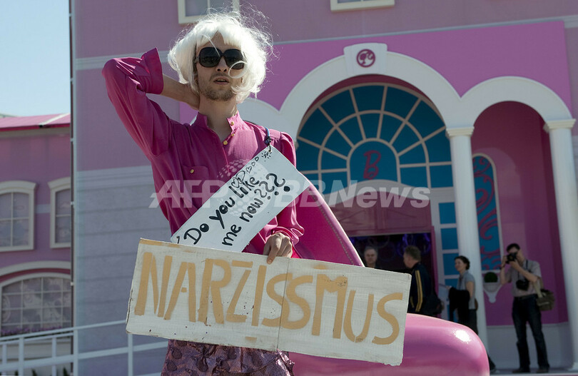 一方、ハウス前には同日、「バービーは性差別主義の象徴だ」と批判する活動家が集まり、抗議デモを繰り広げた。女性権利団体「FEMEN」のメンバーは、ハウス前の広場に飾られた巨大なハイヒール型の噴水に入り、バービー人形を十字架にくくりつけて燃やすなどしてトップレスで抗議した。(c)AFP