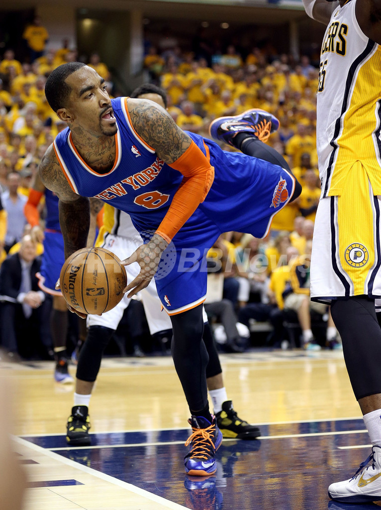 パスを狙うニューヨーク・ニックスのJ・R・スミス(J.R. Smith、2013年5月18日撮影)。(c)AFP/Getty Images/Andy Lyons