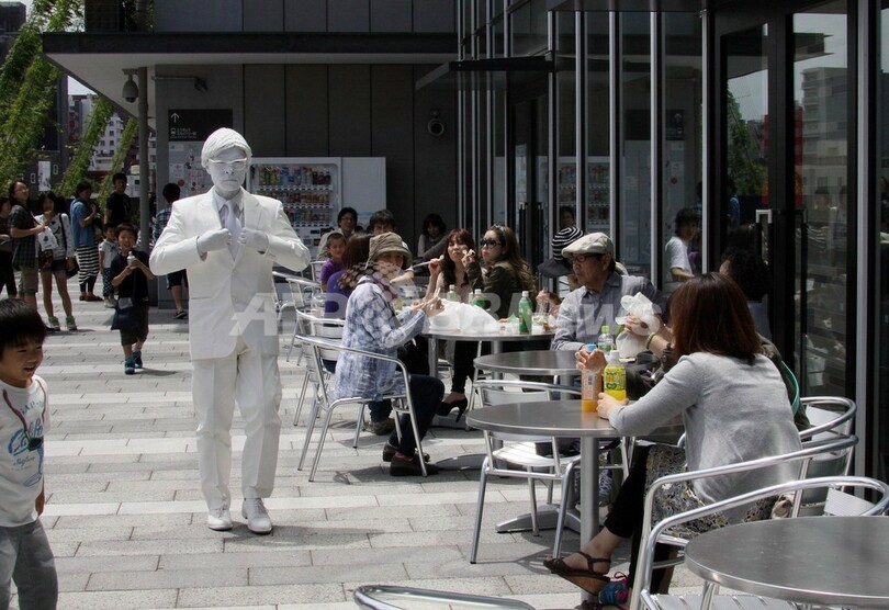 写真は、「The Japanese」と題した彫刻パフォーマンスを披露するパフォーマーのShiva(中央左、2013年5月19日撮影)。(c)AFP/Yoshikazu TSUNO