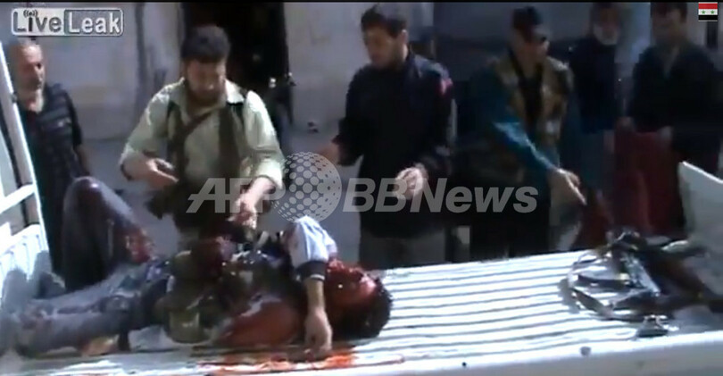 動画共有サイトのユーチューブ(YouTube)に投稿された、シリアのクサイル(Qusayr)でトラックの荷台に載せられた戦闘員を写したとされる動画の静止画像(2013年5月19日撮影)。(c)AFP/HO/YOUTUBE