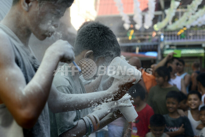 ニュース ライフ 小麦粉を吹き飛ばせ!守護聖人の祭り フィリピン 2013年5月21日 11:30 発信地:マニラ/フィリピン [ アジア・オセアニア フィリピン ] このニュースをシェア ‹ › ❮ 3/6 ❯ フィリピン・マニラ(Manila)で行われた守護聖人「カスチアの聖リタ(St. Rita of Cascia)」の祭りで、カップの中の小麦粉をストローで吹き飛ばす子どもたち(2013年5月19日撮影)。(c)AFP/NOEL CELIS 画像作成中 ! 【5月21日 AFP】フィリピン・マニラ(Manila)で19日、守護聖人「カスチアの聖リタ(St. Rita of Cascia)」の祭りが行われた。祭りでは、子どもたちがストローを使ってカップの中の小麦粉を吹き飛ばす遊びを粉だらけになって楽しむ姿も見られた。マニラでは各守護聖人の祭りが年次行事として開催され、パレードや子供向けのゲームが行われる。(c)AFP ライフ 一覧へ> メディア・報道関係・法人の方向け 写真・動画 購入のお問合せ>