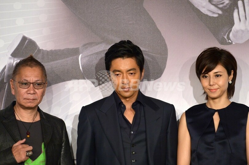 写真は、記者会見に出席した(左から)三池監督、大沢、松嶋(2013年5月20日撮影)。(c)AFP/ALBERTO PIZZOLI