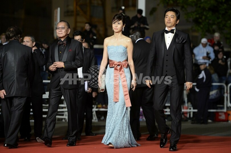 【5月21日 AFP】南仏カンヌ(Cannes)で開催中の第66回カンヌ国際映画祭(Cannes Film Festival)で20日、コンペティション部門に出品されている三池崇史(Takashi Miike)監督作『藁の楯』の公式上映が行われ、監督とともに主演の大沢たかお(Takao Osawa)、共演者の松嶋菜々子(Nanako Matsushima)がレッドカーペットを歩いた。この日は、公式上映に先立ち、記者会見とフォトコールも行われた。(c)AFP