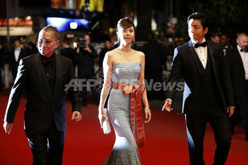 【5月21日 AFP】南仏カンヌ(Cannes)で開催中の第66回カンヌ国際映画祭(Cannes Film Festival)で20日、コンペティション部門に出品されている三池崇史(Takashi Miike)監督作『藁の楯』の公式上映が行われ、監督とともに主演の大沢たかお(Takao Osawa)、共演者の松嶋菜々子(Nanako Matsushima)がレッドカーペットを歩いた。この日は、公式上映に先立ち、記者会見とフォトコールも行われた。(c)AFP