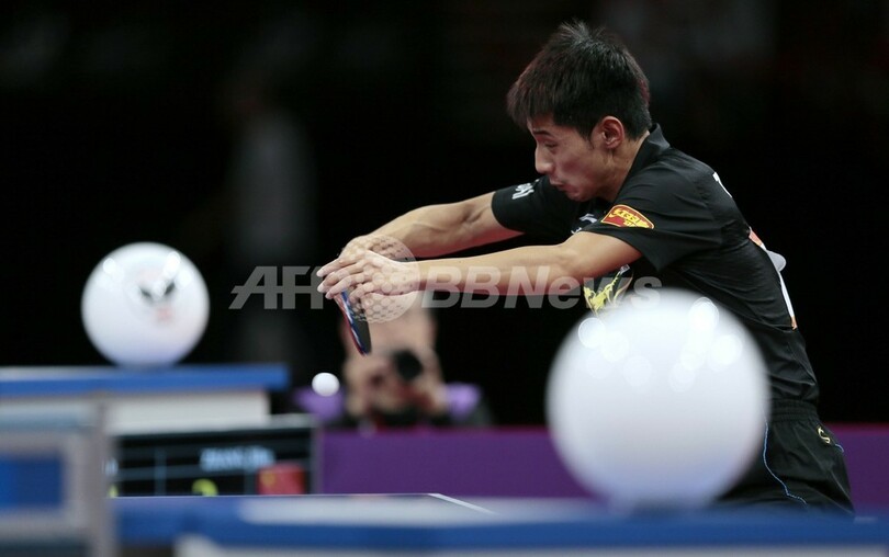 大会第4シードの張継科は、2012ロンドン五輪に続いて王皓を退け、主要大会4連勝を飾っている。(c)AFP