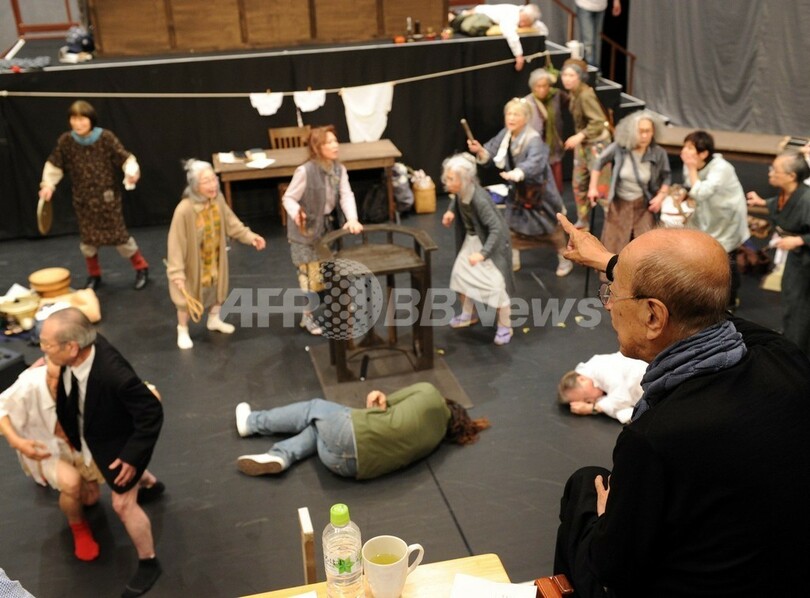 今年1月に心臓の手術を受けた蜷川氏は、時には自分自身の年齢を忘れることもあるが、高齢の俳優たちと一緒にやることを、とても程よいと感じている。「年を取ると、台詞を忘れるだけでなく、出入りさえ忘れてしまう。でも芝居をやってると生き生きしちゃうんですよね。(いくつになっても)自分で成長していくんですね……この劇団が、もう少し続けてみようというエネルギーをくれる」(c)AFP/Shingo Ito